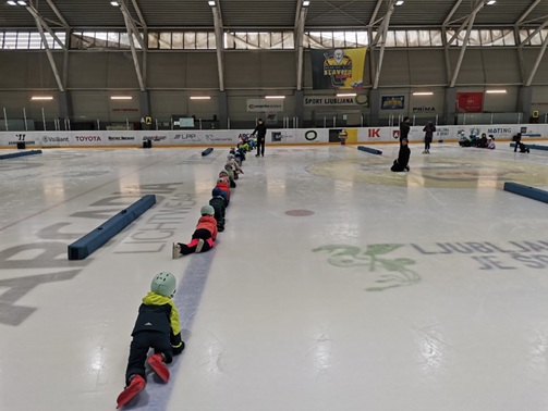 V tednu od 20. 10. 2025 do 24. 10. 2025 so se otroci iz enote Lenka in enote Ajda dnevno vozili do leden dvorane Zalog. Na tečaju drsanja so otroci pogumno stopili na led, se skozi igro naučili prvih drsalnih korakov, premagovali strah in skupaj ustvarili pravo ledeno dogodivščino. S poligoni, hokejskimi igrami in zabavnimi izzivi so krepili ravnotežje, pogum in prijateljske vezi. Na ledu so odkrivali, da vsak padec prinese novo priložnost – in vsak nasmeh nov zagon.